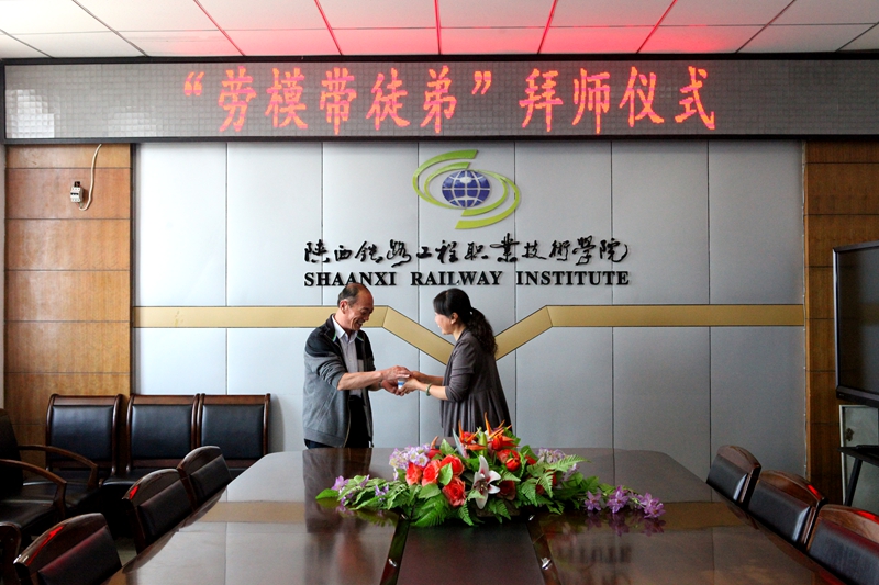 会上,王长友为窦铁成颁发了电气化铁道技术专业带头人的聘书。该系三位中青年骨干教师现场拜师,与窦铁成结成师徒,以实际行动学劳模、拜劳模,传承铁成精神。
