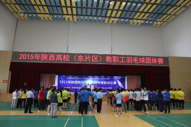 5月23日,2015年陕西高校(东片区)教职工羽毛球团体赛在陕铁院高新校区文体中心举行,共有13个代表队的200余名选手在此竞技。经过激烈角逐,西北农林科技大学、西安交通大学、西安理工大学在A组中出线,杨凌职业技术学院、安康学院、陕西国防职业技术学院在B组中闯进决赛。