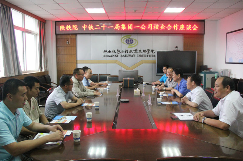 5月28日下午,中铁二十一局集团第一工程有限公司总经理吕新民、副总经理相立群、宁西增建二线项目经理向武一行6人来学院考察交流。院长王长友、党委副书记车绪武,党政办、校企合作处、学生处等相关部门负责人与来宾座谈交流。