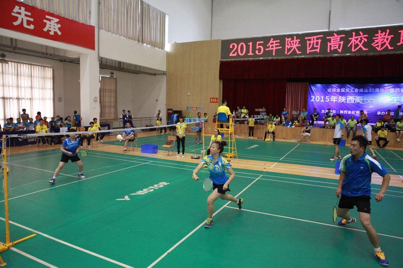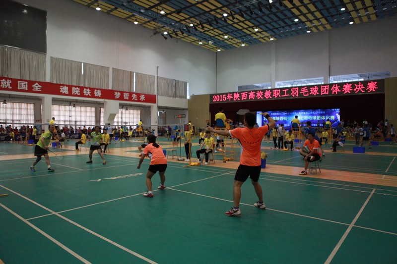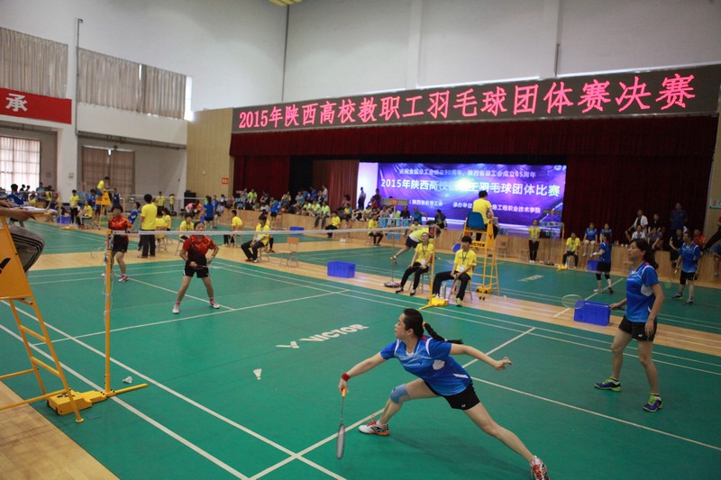 为庆祝中华全国总工会成立90周年,省总工会成立65周年,5月30日至31日,陕西高校2015年度教职工羽毛球团体赛决赛在陕铁院高新校区文体中心举行。来自全省24支代表队、380余名选手经过两天的激烈角逐,最终,西北工业大学摘得年度冠军奖杯,陕西科技大学获得亚军,西安交通大学和西安理工大学获得季军。