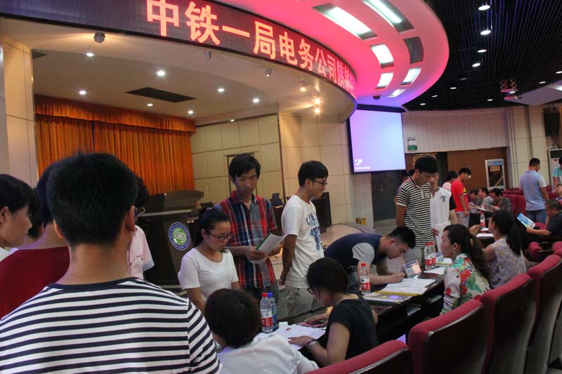 7月2日,中铁八局集团城市轨道分公司、中铁一局集团电务公司两家单位来学院招聘2016届毕业生,100余名毕业生成功与企业签订就业协议。