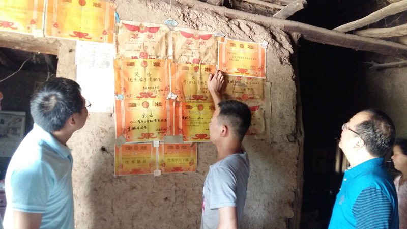 7月14日,在临潼区三庙村的铁成3142班学生、2014年青春榜样十佳自立自强榜样获得者贾鹏飞同学家里,我们和贴满奖状的土墙一起见证了贾鹏飞现在和过去的成长历程,他自己养的波尔山羊以及屋前种植的药材、嫁接的果树印证了自立自强榜样的力量。