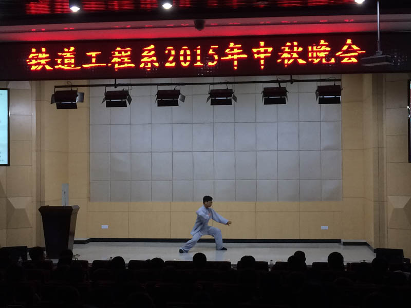 ——电信系团总支组织各班团支部开展中秋节特色活动。电气化3151班的中秋晚会以一曲《朋友》拉开了序幕,通号3151 班的古筝弹奏将晚会推向了高潮,通号3153班请来了学校太极协会的同学们表演太极拳,电气化3141班借着中秋晚会对转专业的新同学表示了欢迎……,各个班级的晚会不时爆发出阵阵掌声和喝彩声。