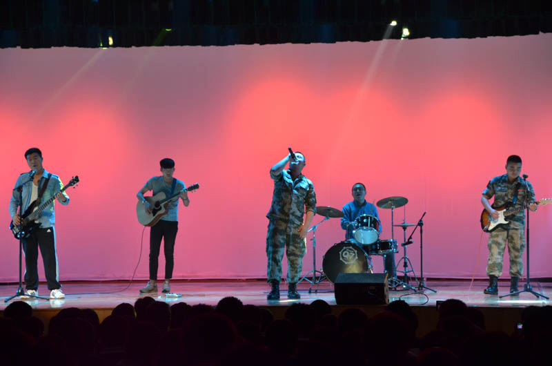 文艺晚会师生同台汇演,友好单位激情演出,大学生艺术团舞蹈队带来的《美人如画》、《街舞》、《狼图腾》、《大漠之花》等舞蹈精彩纷呈,模特队的《服装秀》展示了学生青春魅力,王升同学的快板《三打白骨精》赢得掌声不断,二胡、小提琴、钢琴演奏和63785部队的教官与学院师生合作的电声乐队及渭南火车站职工表演的爵士舞令现场一片沸腾,杨旭老师的独舞《花儿为什么这样红》婀娜多姿,深深地感染了全场观众。