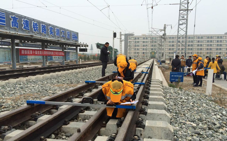 “铁路线路工”为个人竞赛项目,要求参赛选手根据铁路工务维护作业标准在10分钟内完成100m线路轨道状态检查工作,引导学生树立高标准从事铁路工务维护作业的质量意识,熟悉轨距、水平、轨向、前后高低等检测方法,并能根据检测数据确定轨道状态不良的病害点及相应整治措施,以达到以赛促学的目的,为学生将来步入工作岗位从事铁路工务维护工作奠定基础。