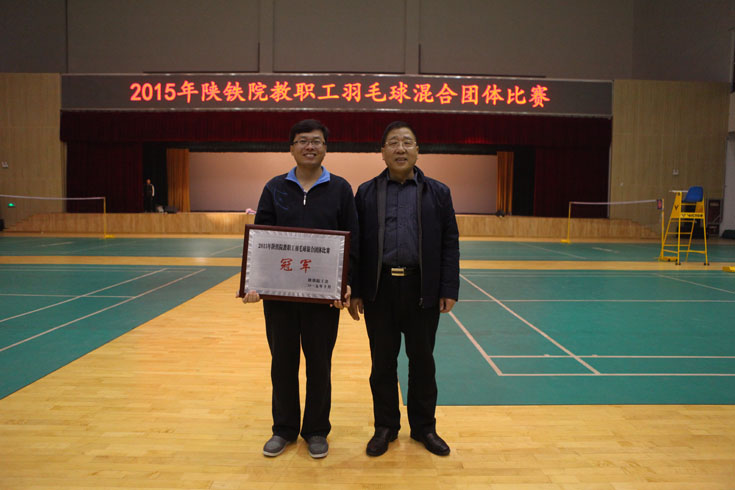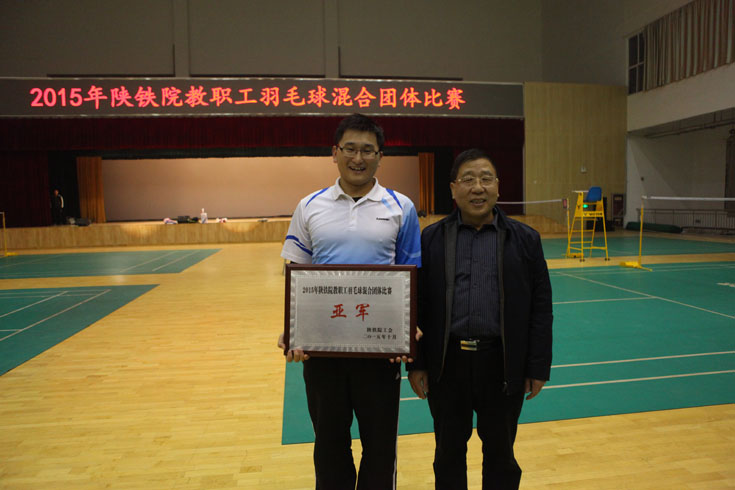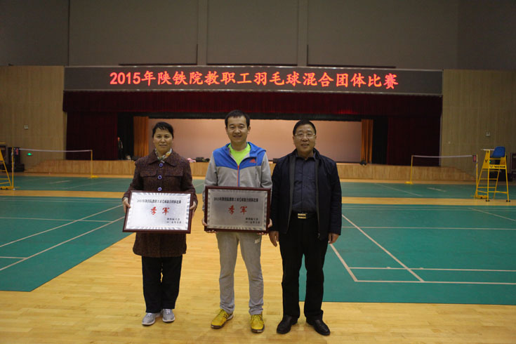11月3日,由学院工会组织的2015年陕铁院教职工羽毛球团体比赛在高新校区体育馆落下帷幕。院基础分会夺得冠军,机关二分会获得亚军,电信分会和建筑分会一队并列季军,测绘分会、后勤分会获“优秀组织奖”。院党委副书记、工会主席杨云峰为获奖代表队颁发了奖牌。