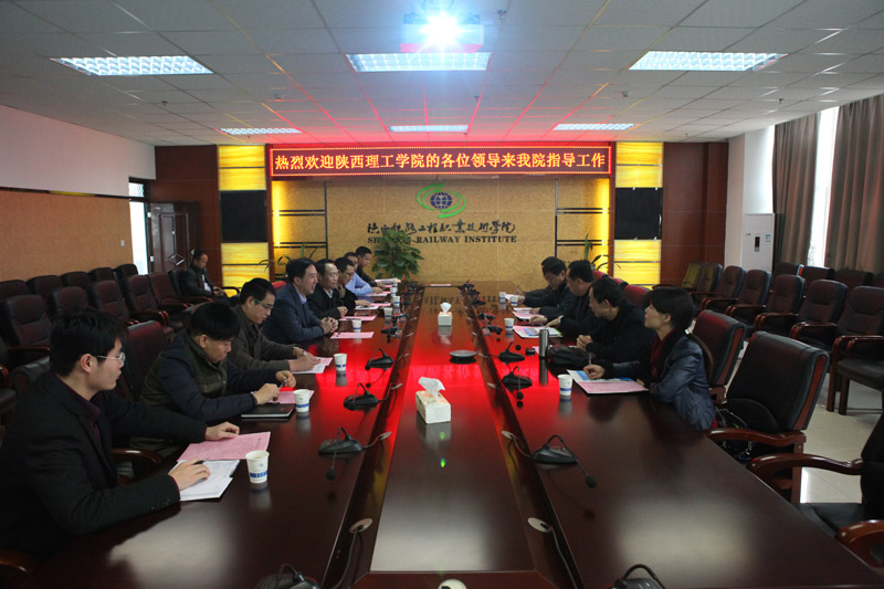 11月20日,陕西理工学院副校长冯小明及教务处、督导室等部门负责人一行5人来到陕铁院,考察调研专升本学生学籍管理和实践教学情况。学院院长王津、党委副书记车绪武,教务处、学生处、铁道工程系、建筑工程系等部门负责人与来宾进行了座谈。