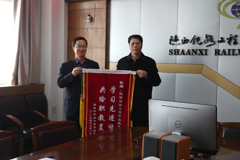 双方观看了学院宣传片《魅力陕铁院》,王闯和梁茂林分别介绍了在座人员和学院(校)基本情况,并就教学和思政工作进行深入交流。期间,韩城市职业中等专业学校向学院赠送“学习先进经验 共绘职教蓝图”锦旗。
