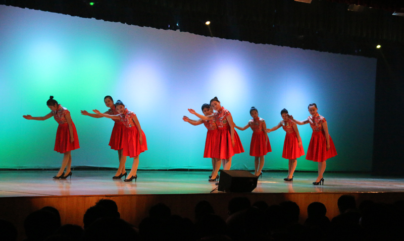 此次晚会以“回眸历史,绽放青春”为主题,节目有舞蹈、歌曲、朗诵、小品、乐器演奏等类型。青年学子在属于自己的青春舞台上引吭高歌、翩跹起舞,用青春的歌声、跃动的舞步、飞扬的激情重温斑驳的历史、演绎火红的青春,憧憬美好的未来,释放青年学子朝气蓬勃的满腔热情,抒发对伟大祖国的无限热爱。晚会精彩纷呈、高潮迭起,赛场上不时响起热烈的掌声。