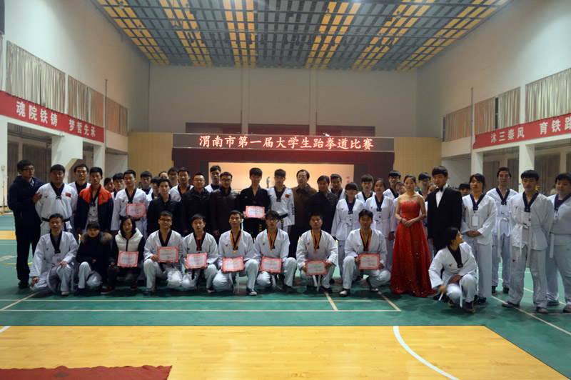 比赛分实战和品势比赛两个环节。品势环节中陕铁院赵彦朋获一等奖,渭师院彭佳丽、李新娜分获二等奖,渭职院李治燕、渭师院敢泽阳和陕铁院刘锦铭分获三等奖;陕铁院龙博跆拳道协会成员包揽实战比赛前三名,其中陈岁涛夺得冠军、尚鹏伟夺得亚军、杨轩和张航获季军。
