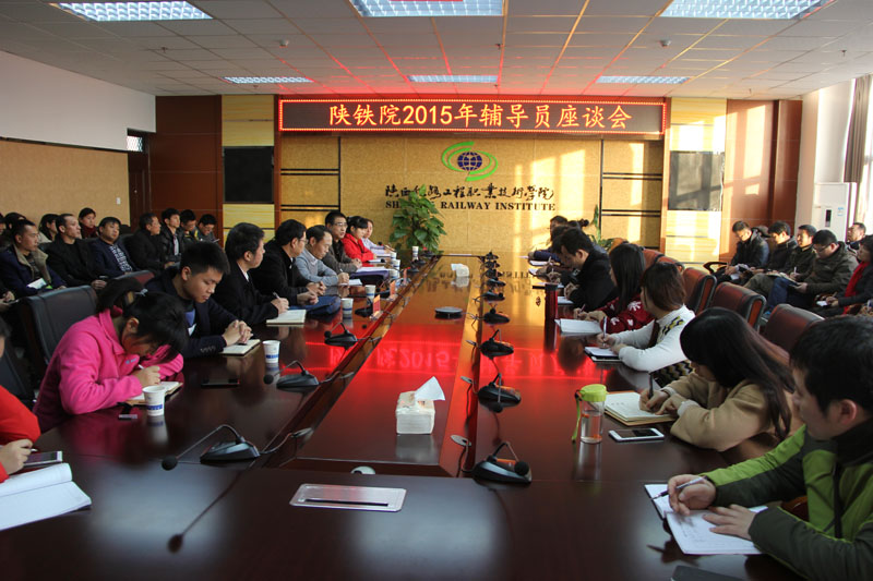 12月17日下午,陕铁院召开2015年辅导员座谈会,学院党委书记王晖、党委副书记车绪武、副院长王闯出席会议并讲话,学工部(处)、各系有关负责人,办公室副主任、全体辅导员参加会议。座谈会由车绪武主持。