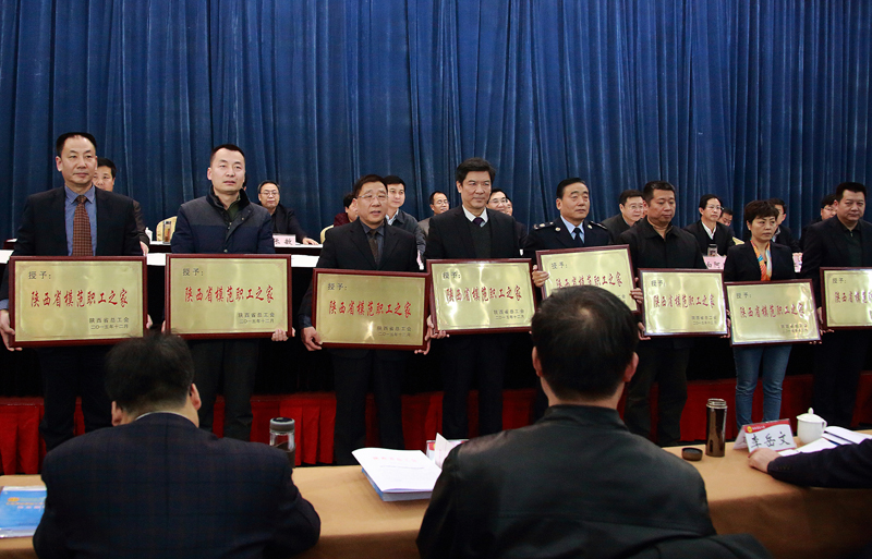 1月21日下午,在陕西省总工会召开的十三届五次全委扩大会上,省总工会宣布了“关于表彰‘陕西省模范职工之家’的决定”,省委副书记胡和平及省总工会领导现场为陕西铁路工程职业技术学院工会等10个单位颁发了“陕西省模范职工之家”奖牌。陕铁院党委副书记、工会主席杨云峰代表学院登台领奖。