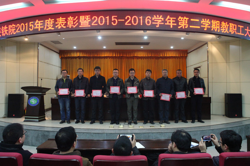 会议对2015年度考核优秀部门、优秀教师、先进个人、教学质量工程与学生竞赛及院外获奖集体和个人进行了表彰。王晖和王津等院领导向获奖部门和个人颁发了奖牌和荣誉证书。(吕康清/文 蒋萌/图)
