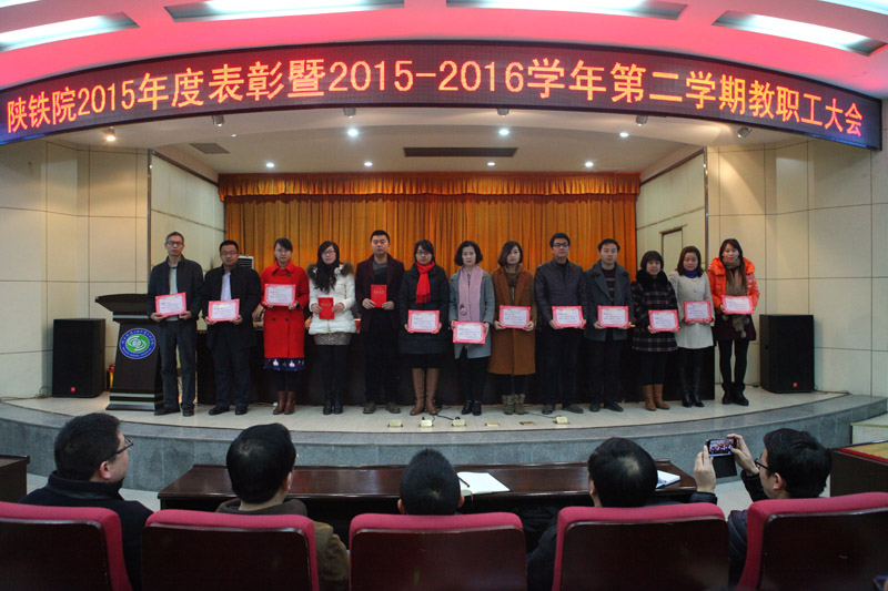 2月21日上午,学院在临渭校区学术报告厅召开2015年度表彰暨新学期全体教职工大会。学院党委书记王晖,院长王津,党委副书记、纪委书记杨云峰,副院长王闯、焦胜军、李林军出席会议,全体教职工参加了大会。会议由党委副书记车绪武主持。