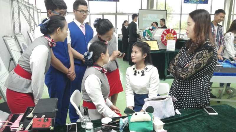 在客运服务礼仪和盘发技能展示中,学生们整齐帅气的衣着、和馨温暖的笑容,飒爽英姿站立,优雅的礼仪操,成为会场一道靓丽的风景线,吸引了众多参会人员的眼球,彰显出学院学子的卓越风采。
