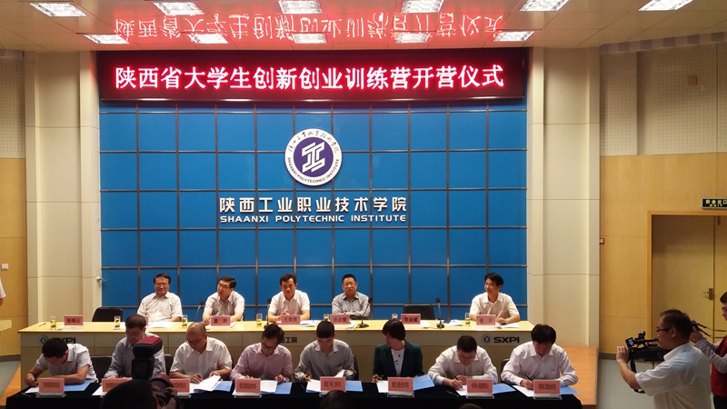 5月6日上午,由省教育厅主办、省职业技术教育学会协办的陕西省大学生创新创业训练营开营。中共陕西省委高教工委委员、省教育厅副厅长、省高教局副局长王紫贵,教育部职成司高职发展处副处长任占营,全国高职高专校长联席会议主席董刚,高职教育知名专家陈解放,陕西省职教学会副会长、学院党委书记王晖,院长王津出席了仪式。共有来自省内的92所高校、9所企业代表约400人参加了开营仪式。开营仪式由省教育厅高教处处长范永斌主持。