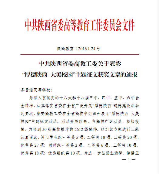 自“陕西大学生在线”网站开通以来,学院积极参与共建工作。2016年,学院共建频道先后与兄弟部门组织师生参加了“金麦克”主持人大赛、经典诵读比赛、厚德陕西征文比赛等多项活动,全年更新共建频道信息5600余篇,综合排名位居全省70余所共建单位前列。(党委宣传部)