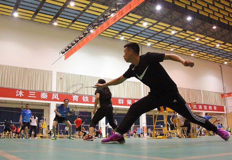 6月13日晚,陕西铁路工程职业技术学院工会举办的“陕铁院2017年度教职工羽毛球混合团体赛”,在高新校区体育中心的十个标准羽毛球场拉开帷幕。由全院13个工会分会组成的15支男女混合羽毛球队共203名运动员参加了比赛。比赛赛制和裁判组织完全按照陕西高校统一赛制进行,以确保体现公平公正原则。学院党委书记王晖、党委副书记车绪武、党委副书记工会主席杨云峰等院领导以运动员身份分别参加了首轮比赛。(季露)