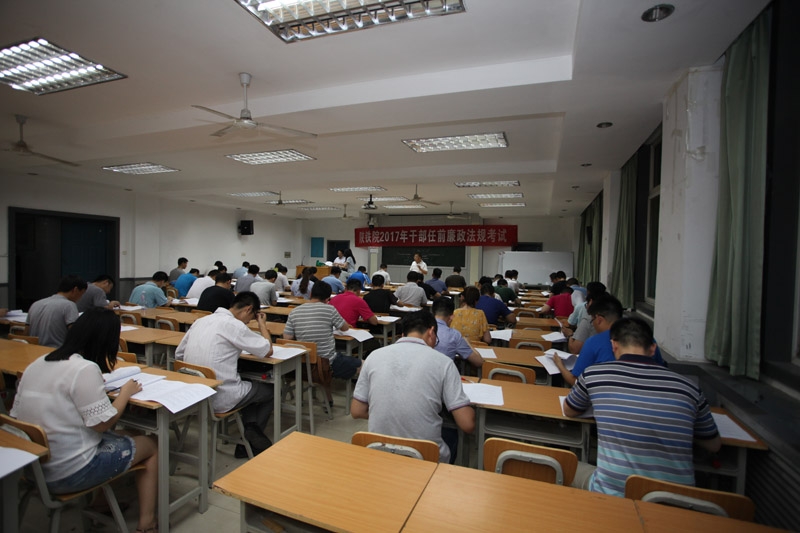 近期,学院进行了2017年竞聘处科级干部拟任人选的任职前公示。6月28日,学院举办了陕铁院2017年干部任前廉政法规考试,56名处级干部和53名科级干部在临渭校区B100和B200教室分别参加了考试。考试期间,各处科级干部严肃认真答题,考试公正有序进行,考场氛围良好。该项工作由纪委办会同组织部、人事处相关人员进行。(张玉卓/文 杨光/图)