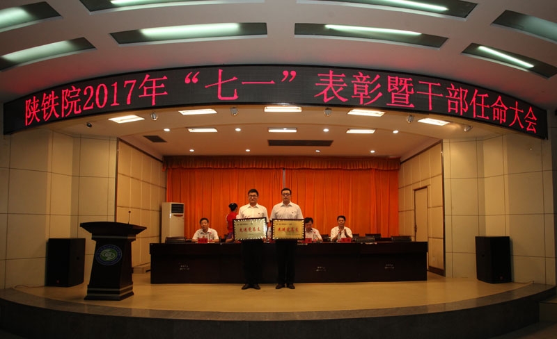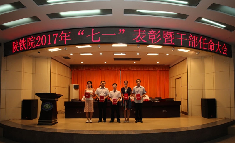 6月30日下午,学院2017年“七一”表彰暨干部任免大会在临渭区学术报告厅隆重召开。党委书记王晖、院长王津、党委副书记、纪委书记杨云峰、副院长王闯、焦胜军出席会议,全体教职工党员和部门学生党员参加了会议。会议由王津主持。