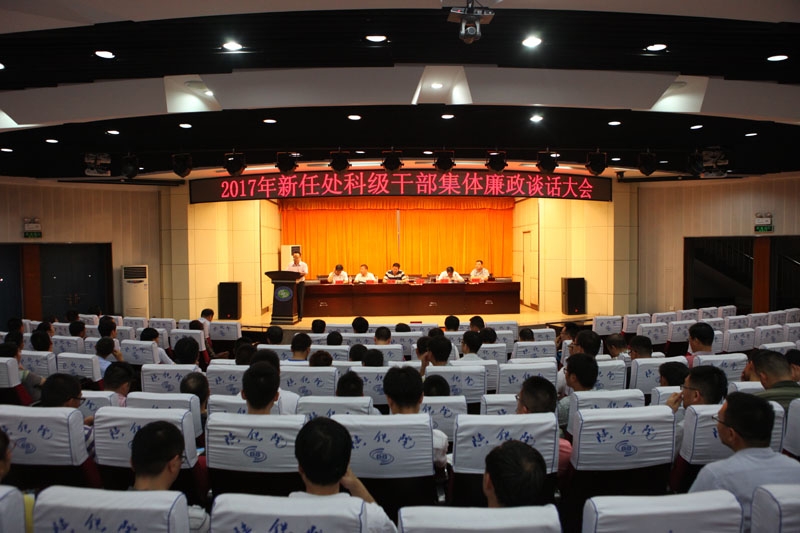 7月4日下午,学院在学术报告厅召开2017年新任处科级干部集体廉政谈话大会。党委书记王晖,党委副书记车绪武,杨云峰,副院长王闯、焦胜军、李林军出席大会。学院2017年全体新任处科级干部参加了大会。