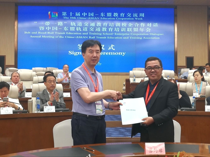 据悉,为了更好地服务中国高铁走出去战略,在第九届中国-东盟教育交流周活动中,由北京交通大学、中国职业技术教育学会轨道交通专业委员会牵头成立了中国-东盟轨道交通教育培训联盟,学院是66家成员单位之一。联盟成立一年来,推进了成员单位国际化进程,今年是联盟成立以来的首次年会。学院以参加此次年会为契机,向外界展示了学院的风采,加强了与东盟各国高校以及相关企业的合作与交流,为进一步推进学院国际化办学与培训积累了经验。(王云波/文 段东旭/图)