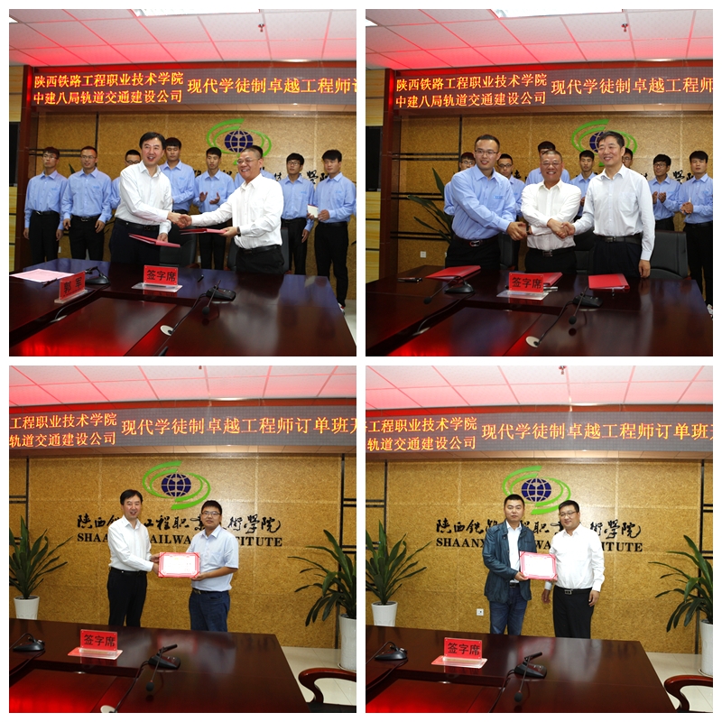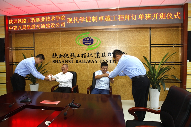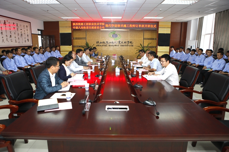 9月5日上午,学院与中建八局轨道公司在高新校区南楼会议室举行2016级现代学徒制卓越工程师订单班开班仪式。院长王津、副院长焦胜军、中建八局轨道公司总工程师唐立宪、副总工程师荣亮等企业领导,学院就业处、教务处、轨道工程系等部门负责人,相关专业教师及订单班35名学生参加了开班仪式。会议由焦胜军主持。