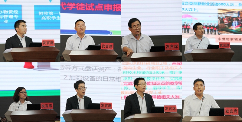 16个部门围绕国家优质学院建设、“一流学院、一流专业”建设,结合承担的创新发展行动计划任务,从职教集团建设、国际合作交流、师资队伍建设、学生思想政治教育、教学诊断改进推进情况、现代学徒制试点、创新创业试点系、精品在线开放课程、生产性实训地基、技能大师工作室等方面做了交流发言。会议采用蓝墨云班课对各部门发言情况进行投票评价,取得了良好的效果。