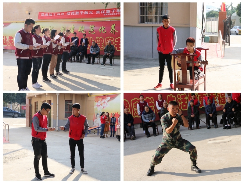 活动在婉转悠扬的歌声拉开帷幕,军体拳,戏曲秦腔等符合老年人“口味”的节目相继上场,赢得场下一次又一次的掌声。活动中,志愿者还将系部陶艺学社准备的精美作品作为礼物送给各位老人。期间,渭南市临渭区残联理事长对此次志愿服务活动给予了高度赞扬,鼓励同学们多利用闲暇时间进行志愿服务活动,弘扬中华民族传统美德,传递社会正能量。