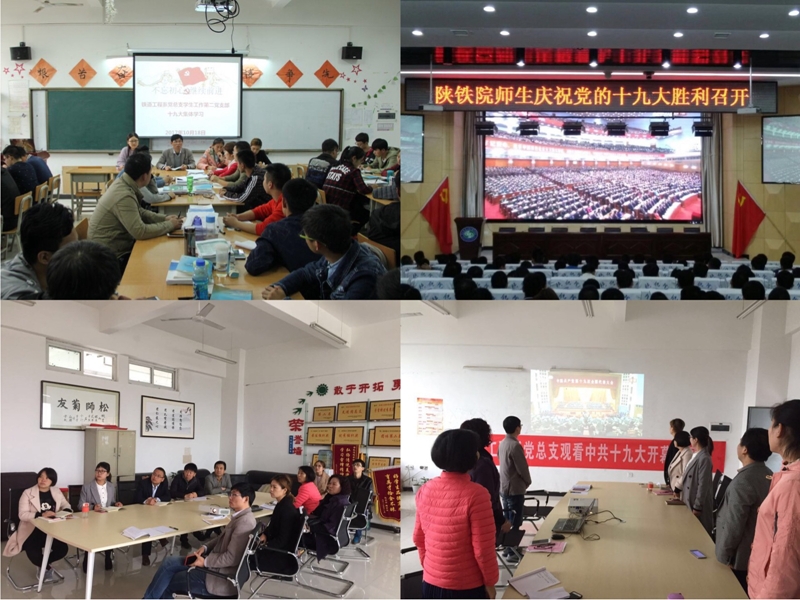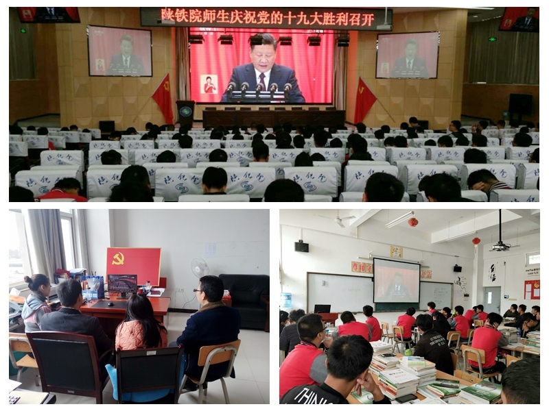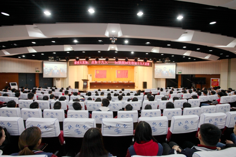 2017年10月18日,铁工党总支组织全体师生共700余人收听、收看党的十九大开幕式,认真聆听习近平总书记所作的十九大报告。
