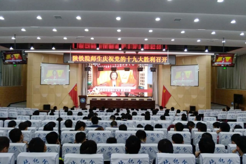 为讴歌党的光辉历程,迎接党的十九大胜利召开。学院党委于10月18日上午9时,分别在临渭校区学术报告厅、高新校区博爱厅设置十九大开幕会收看点,组织无课教师收看;学生工作部、团委组织学生团干部、无课学生班级集中收看开幕会。因上课无法收看开幕式的学生班级,利用晚自习时间在教室内进行集中收看学习。