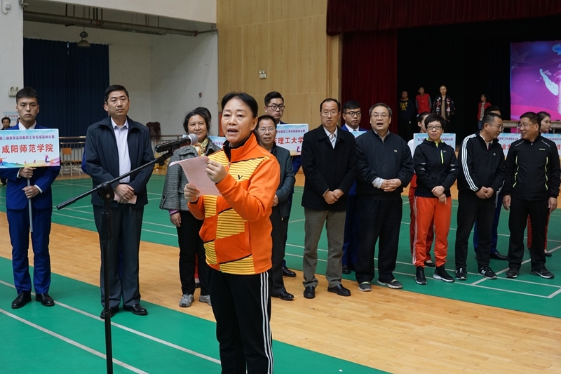 陈建树代表省教科文卫体工会致辞,希望本次比赛展省内高校之风采,扬教育工会之美名,为陕西省的体育事业再添佳绩。