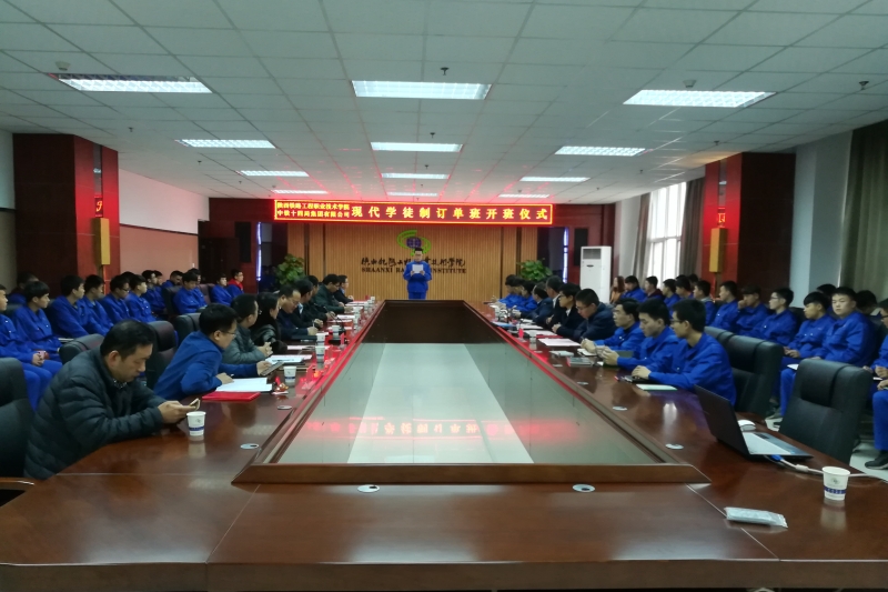 为进一步深化产教融合,完善校企合作育人机制,创新技术技能人才培养模式,促进行业企业参与职业教育人才培养全过程, 11月14日上午,学院与中铁十四局集团有限公司在高新校区行政北楼3楼会议室举行现代学徒制订单班开班仪式。学院副院长焦胜军、李林军,中铁十四局集团公司人力资源部副部长汤凯、大盾构公司人力资源部长田素磊、隧道公司人力资源部长王松涛等校企领导出席仪式,学院校企合作处、教务处、轨道工程系、机电工程系等部门负责人及订单班71名师生参加会议,会议由校企合作处处长主持。