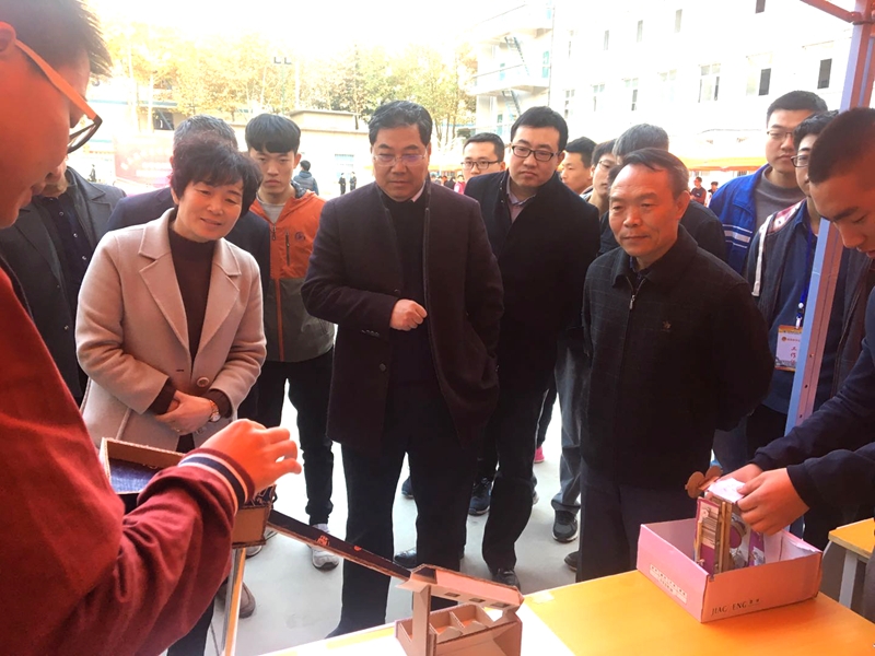 在作品展评活动中,学院党委书记王晖、党委副书记车绪武与全国人大代表雷温芳、渭南市临渭区扶贫办主任王效民以及临渭区教育局、科技局、农业局、交通局、人社局、住建局等单位负责人一同参观指导,学生创新作品亮点纷呈,得到了参观嘉宾的高度赞誉。