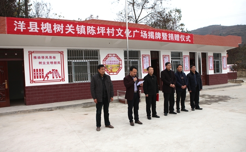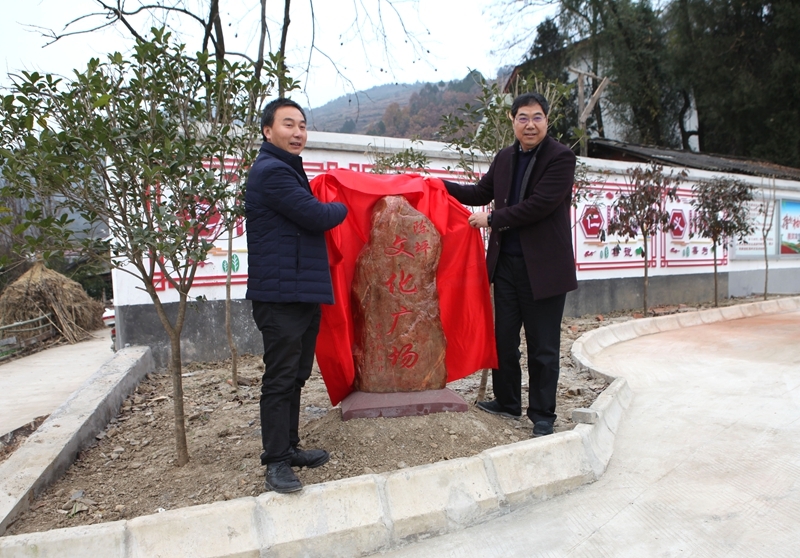 12月7日上午,学院援建的陈平村文化广场揭牌仪式在洋县举行。洋县教体局长王志峰、槐树关镇长杨虎善、学院党委书记王晖、党委副书记车绪武及相关部门负责人参加揭牌仪式。