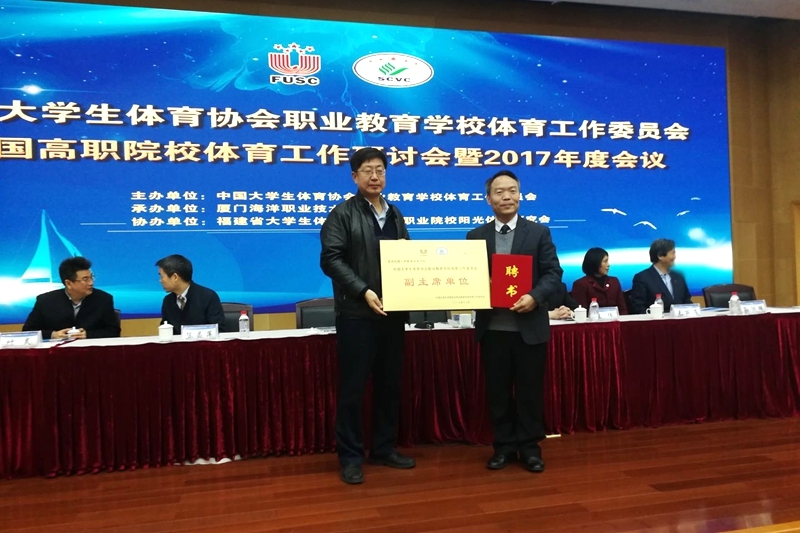 在会上,学院当选为中国大学生体育协会职业教育学校体育工作委员会副主席单位;车绪武副书记被聘为职业教育学校体育工作委员会副主席,体育教学部主任张骏被聘为中国大学生体育协会职业教育体育工作委员会副秘书长。会议总结了2017 年全国高职院校体育工作及取得的成绩,对2018年各类学生竞赛活动及教师业务培训进行了布置。