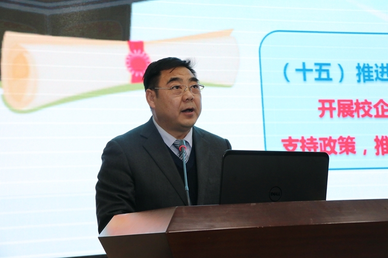 最后,刘建林在会上作了重要讲话。他从高等教育发展的路径选择、内涵发展、特色发展等方面对2017年工作进行了总结,并肯定了全省高等教育取得的成绩,同时结合高职院校发展在新形势下所面临的新要求,对下一步工作进行了安排。他强调,全省高职院校要以十九大精神为指引,把握发展形势、保持战略定力、增强发展自信,全方位提升办学水平、提高人才培养质量、提升社会服务能力,加快推进我省高职教育现代化,全面完成新时代高职教育的新任务,为陕西省经济社会发展做出贡献。
