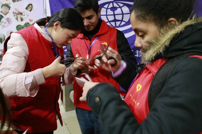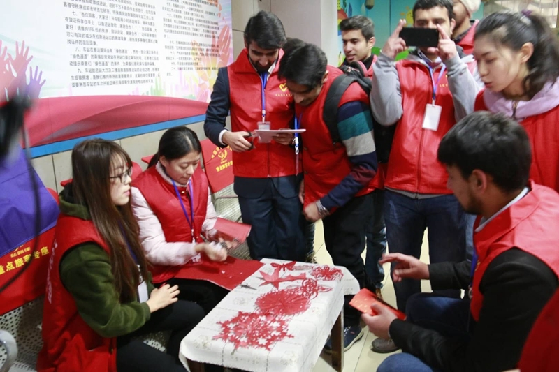 志愿者教授哈萨克斯坦留学生剪纸技艺