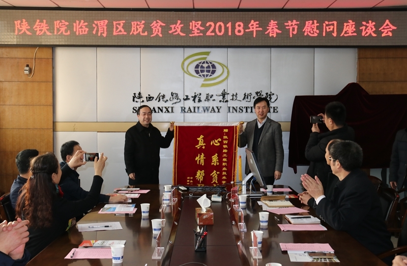 会上临渭区向学院赠送了“心系贫困 真情帮扶”锦旗。(李博/文 张玉鹏/图)