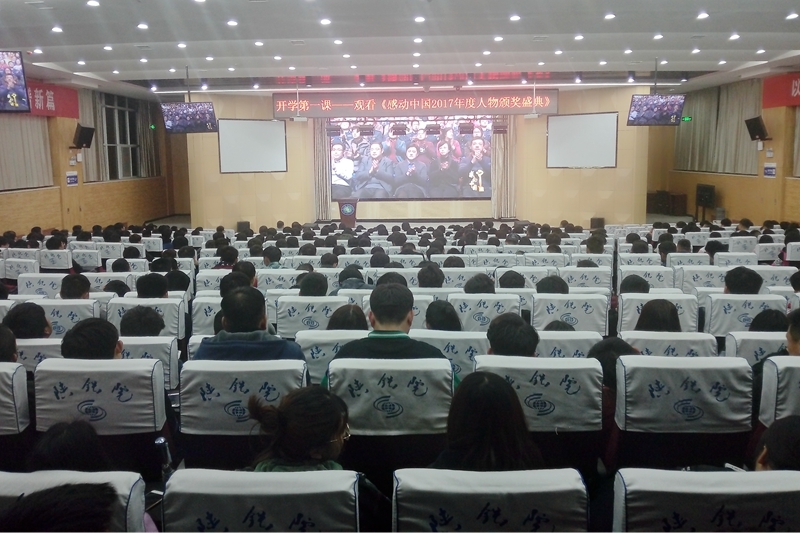 新学期伊始,为贯彻落实立德树人根本任务,引导学生学习先进人物的崇高风范和伟大精神。3月4日晚,开学第一节课,建筑工程系在高新校区诚信厅、博爱厅组织近1000名学生观看了《感动中国2017年度人物颁奖盛典》,接受了一次真情、善良、感恩的教育与洗礼。