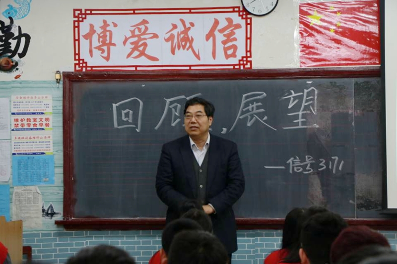 焦胜军每到各班,都驻步停留,旁听同学们的主题班会,了解寒假社会实践情况和学习生活情况,向同学们解读两会精神,宣讲伟大中国新气象新面貌。