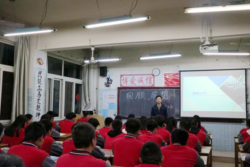 王晖在总结讲话中说到,信号3171班是一个充满温馨氛围、洋溢青春气息的大家庭,他感受到了同学们的关系融洽、和睦友爱,肯定了同学们上取得的成绩。同时他还介绍了学院2017年度所获得的各项荣誉。青春是用来奋斗的,王晖希望同学们要学会控制自己,取得优异成绩关键取决于自己对学习的态度以及个人付出的行动,要变被动为主动,变消极为积极,在新学期里为自己的目标努力奋斗。