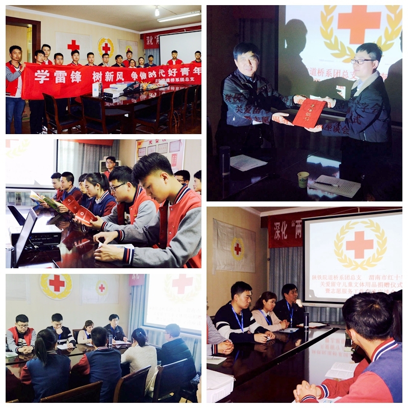 爱心队伍抵达目的地受到了市红十字会秘书长和工作人员的热情接待。活动座谈会上,秘书长为我们介绍了红十字会的发展历史、社会作用和组织结构,双方商议了捐赠品的去向等内容。他号召铁院广大青年学子发扬红十字会精神,弘扬社会正能量。捐赠仪式上,道桥系捐出各类书籍、学习办公文具、体育用品和娱乐设备等,红十字会的工作人员对于我们的爱心善举表示称赞和感谢,并为道桥系颁发荣誉证书。道桥系今后还将继续开展相关献爱心活动,播种爱心,传递真情。(汪琦)