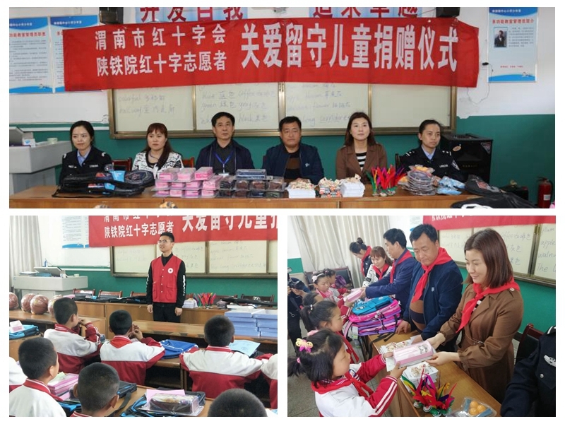 阳春三月,微风和煦,3月29日测绘工程系红十字会志愿服务队的同学协同渭南红十字会,来到临渭区桥南镇崇凝中心小学,看望在这里读书的留守儿童,给他们送去文具、图书、体育用品,也给他们送去欢乐。