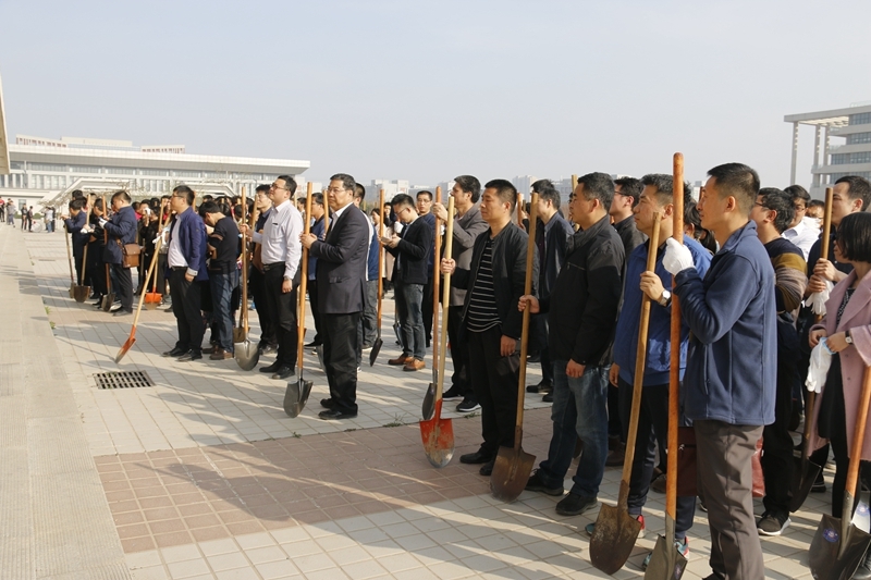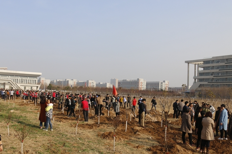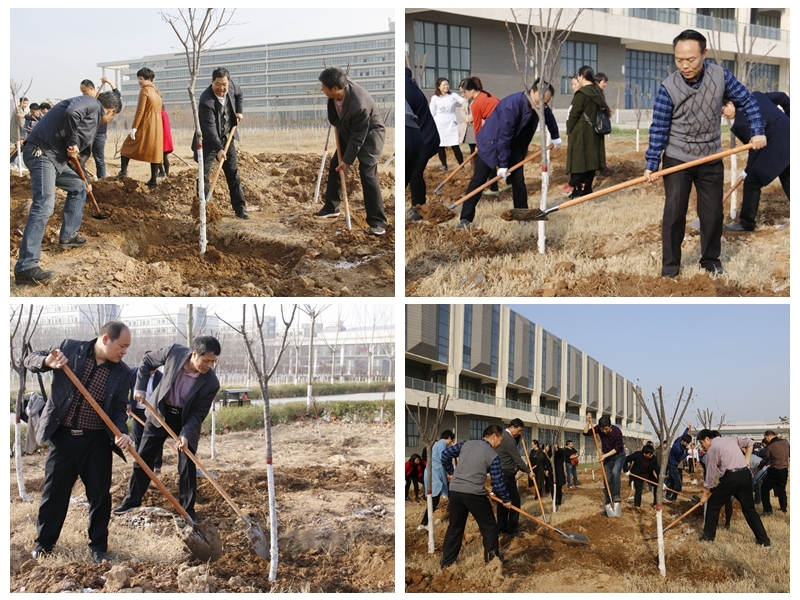 十年之计莫如种树,3月12日,是中国的第40个植树节,为改善校园生态环境,树立师生生态文明意识,学院以“植树添绿,美化校园”为主题,组织师生在高新校区文体中心南侧空地开展了春季义务植树活动。学院党委书记王晖,党委副书记车绪武,副院长王闯、焦胜军、李林军,相关系部负责人、师生等近400余人参加了义务植树活动,用实际行动建设绿色校园。