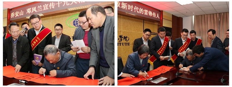 座谈会上,车绪武宣读了学院2017年度学雷锋活动示范点和岗位学雷锋标兵表彰决定。乔安山、邓凤兰为获奖集体和个人颁授了荣誉证书和奖牌,并分别以“用雷锋精神建校育人”、“做新时代雷锋传人”为学院提笔赠言。(侯峰/文 杨光/图)