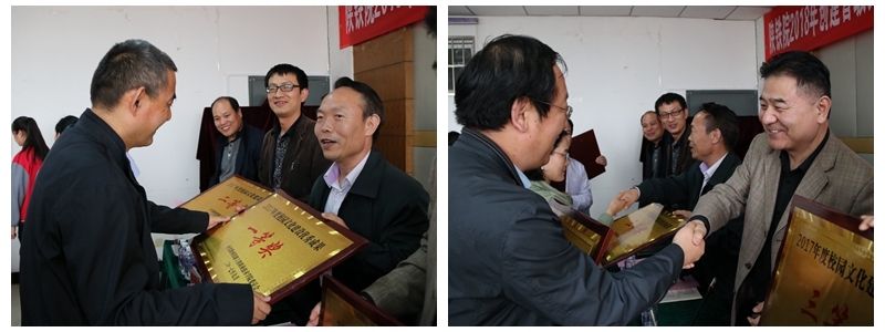蒋平江宣读了院党委《关于表彰奖励2017年度院级校园文化建设优秀成果的决定》,并对2018年校园文化成果申报工作做了说明。车绪武、颜明奇等与会领导为电信工程系、道桥工程系等获奖部门颁发了奖牌。