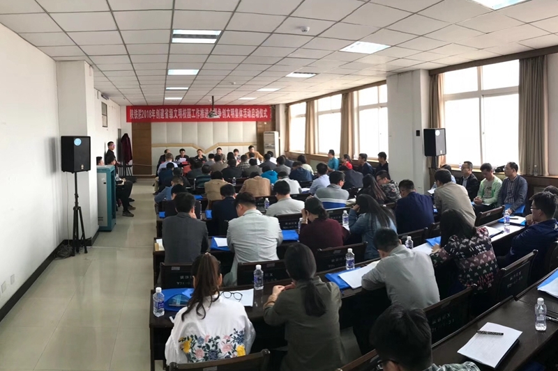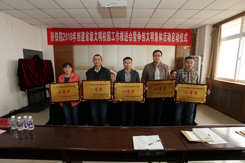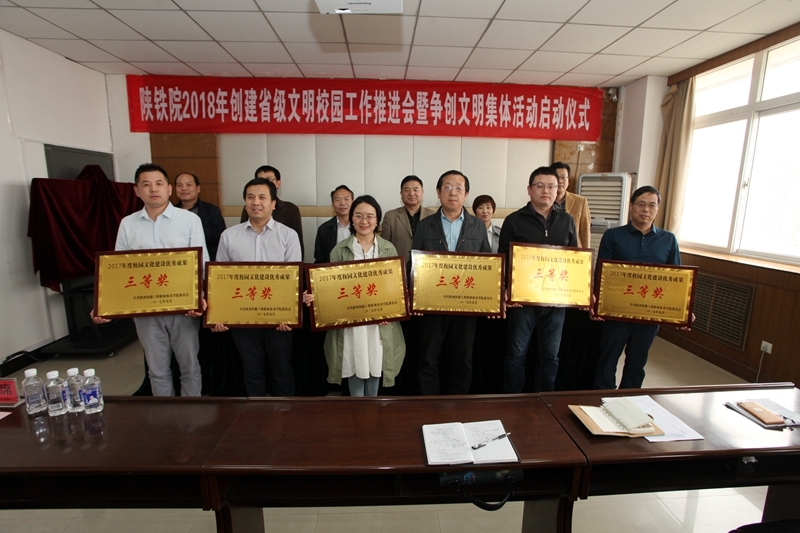 为做好2018年度省级文明校园创建各项工作,落实立德树人根本任务,4月10日下午,陕西铁路工程职业技术学院2018年创建省级文明校园工作推进会暨争创文明集体活动启动仪式学院在临渭校区12楼会议室举行。学院党委副书记车绪武、渭南市文明办未成科科长颜明奇、干部李侠出席会议,党委委员、文明办主任、宣传部部长、党政办主任段东旭,党委委员、教务处处长蒋平江,文明办副主任、后勤保障处处长孙立功及学院文明校园建设领导小组成员、各部门创建工作联络员、2017年院级校园文化成果获奖部门70余人参加了会议。会议由段东旭主持。