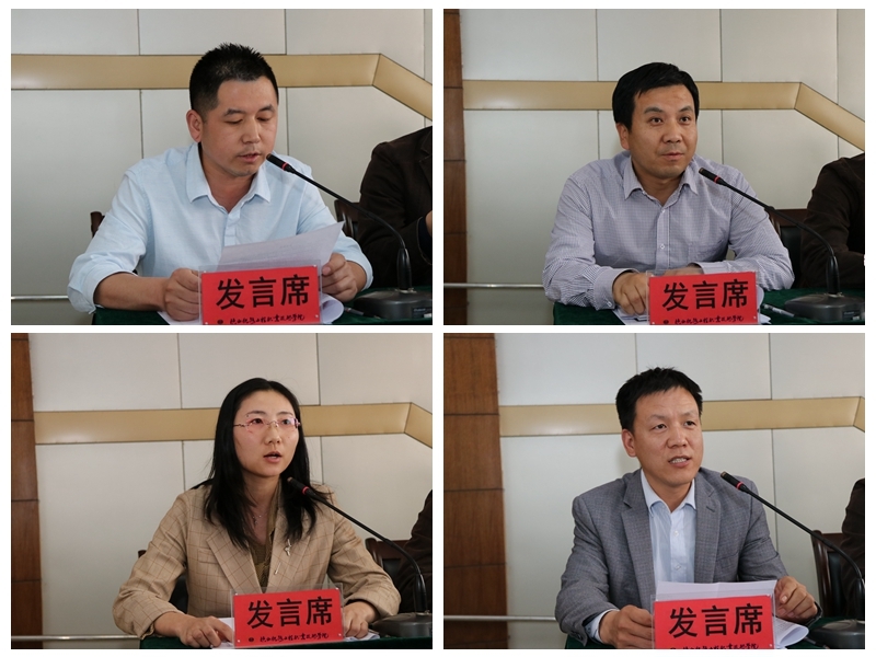安全保卫处处长李晓飞、铁道工程系党总支书记曹喜龙、管理工程系运营教研室主任蔡昱、餐饮中心主任李文斌,分别作为创建文明处室、创建文明系部、创建文明教研室、创建文明食堂代表做了表态发言。