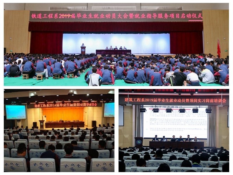 为进一步提高 2018 届毕业生就业率和就业质量,做好 2019届毕业生就业启动工作,学院就业指导中心于3月1日起开展“2018年就业指导服务月”活动。近日,道桥工程系、铁道工程系、建筑工程系相继召开2019届毕业生就业指导报告会,学院就业指导中心主任王庆东在会上作就业指导报告,三系近1800名师生代表参加了报告会。